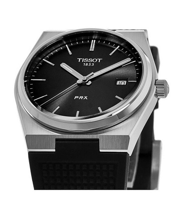 Montre Tissot T-Classic PRX avec bracelet en caoutchouc et cadran noir à quartz T137.410.17.051.00 100M pour homme