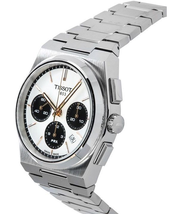 Montre Tissot T-Classic PRX chronographe cadran blanc automatique T137.427.11.011.00 100M pour homme