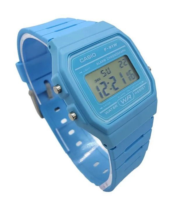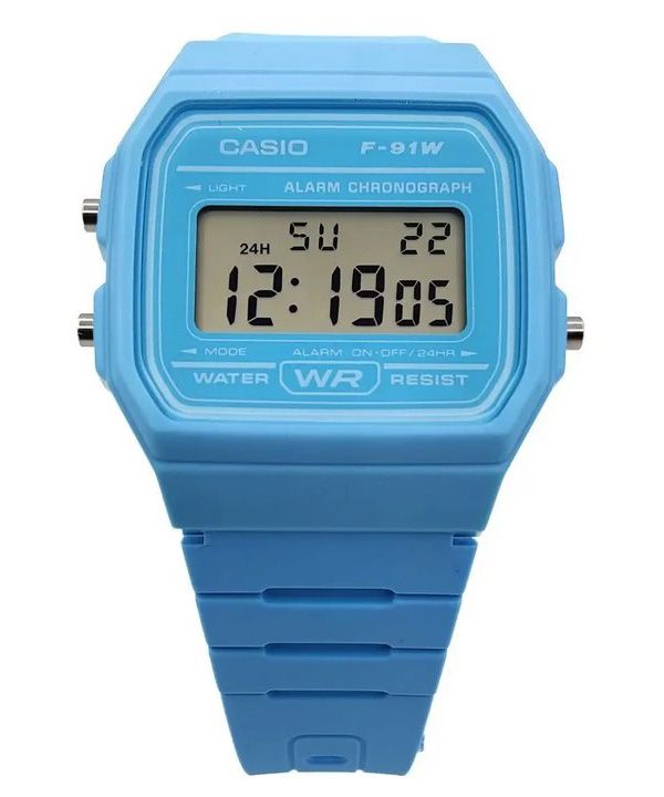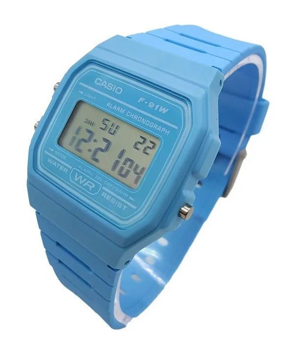 Montre unisexe Casio Digital avec bracelet en résine bleue et quartz F-91WC-2A