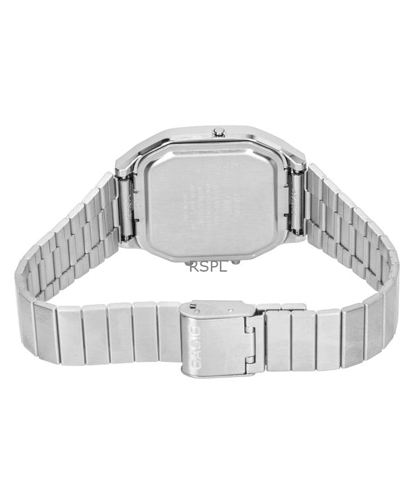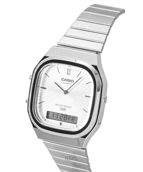 Montre unisexe Casio Vintage Analogique-Numérique en acier inoxydable, cadran argenté, mouvement à quartz AQ-240E-7A