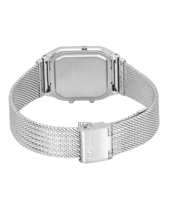 Montre unisexe Casio Vintage analogique-numérique à quartz AQ-230EM-2A, bracelet en maille d'acier inoxydable, cadran bleu