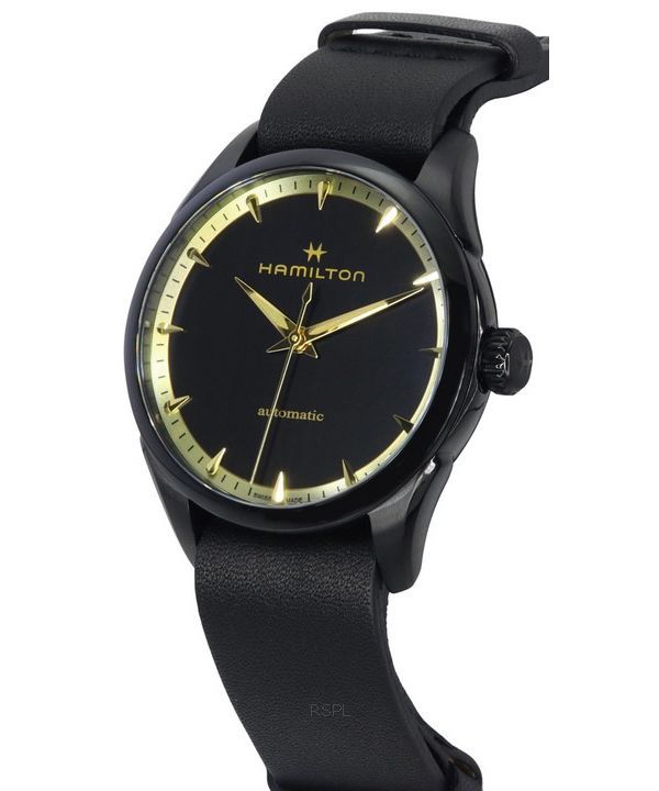 Montre unisexe Hamilton Jazzmaster avec bracelet en cuir et cadran noir automatique H32255730