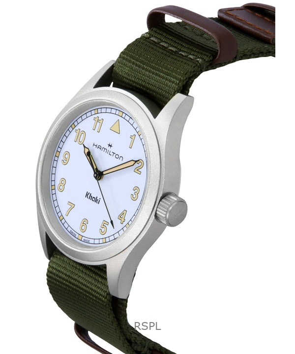 Montre unisexe Hamilton Khaki Field à quartz, bracelet textile, cadran blanc, H69401910