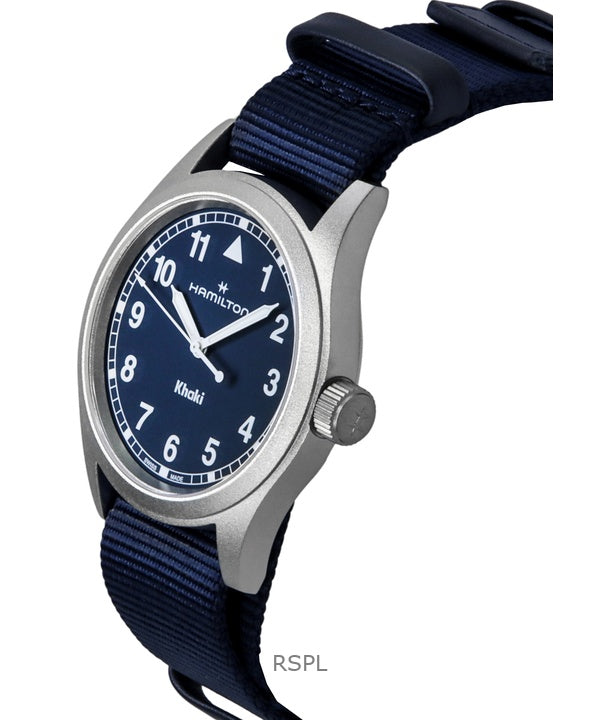 Montre unisexe Hamilton Khaki Field à quartz, bracelet textile, cadran bleu, H69401940