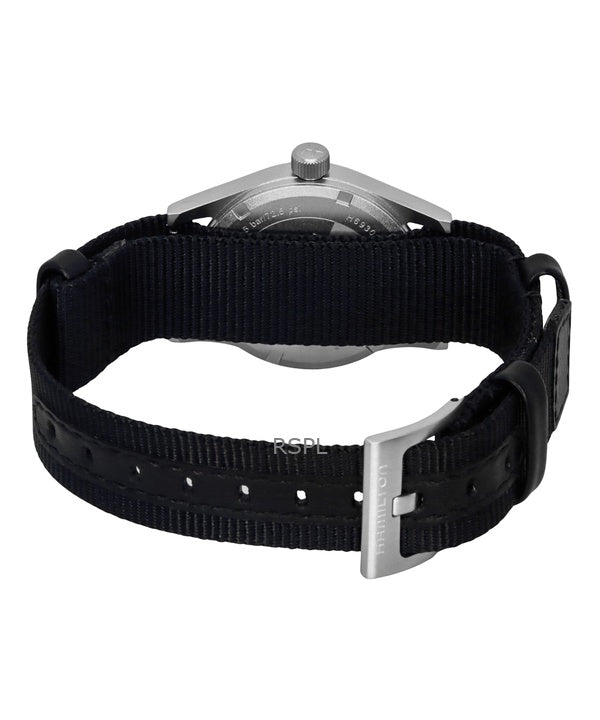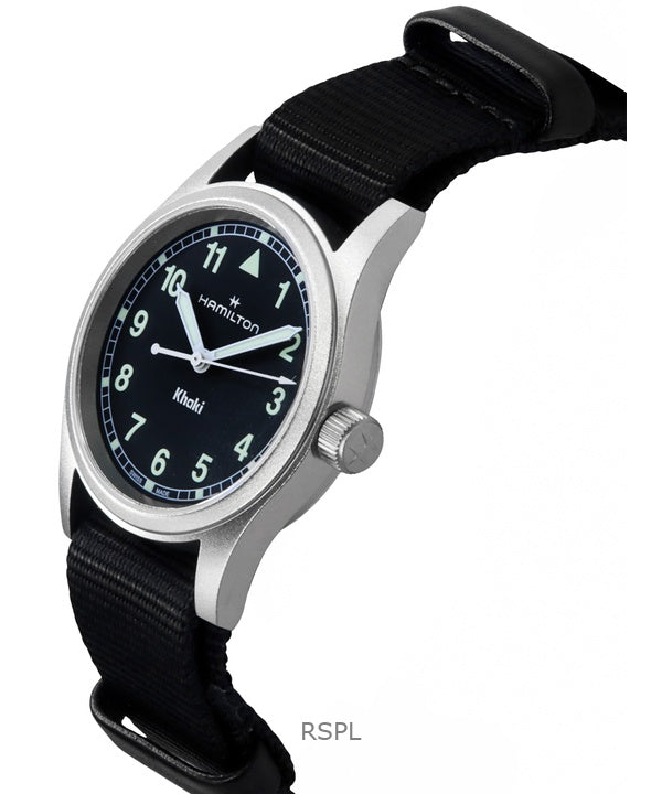 Montre unisexe Hamilton Khaki Field à quartz, bracelet textile, cadran noir, H69301430