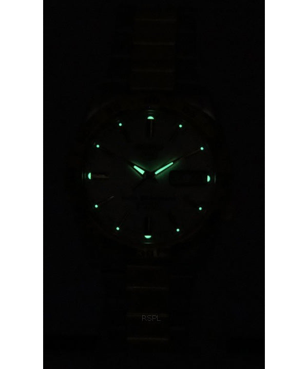 Montre unisexe Seiko 5 en acier inoxydable bicolore, cadran blanc, 21 bijoux, automatique SNKE04J1