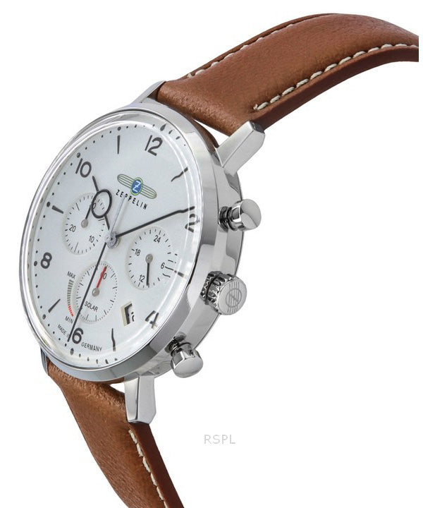 Montre Zeppelin LZ129 Hindenburg chronographe bracelet en cuir marron cadran beige solaire 80865N pour homme