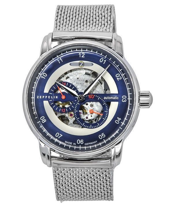 Montre Zeppelin New Captain',s Line en acier inoxydable avec cadran squelette bleu automatique 8664M3 pour homme
