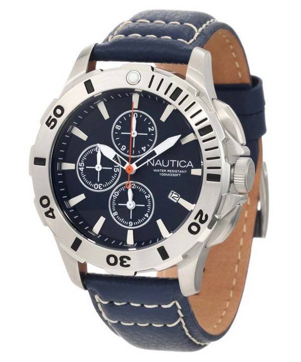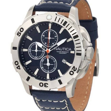 Nautica chronographe en cuir bleu fermoir N18642G