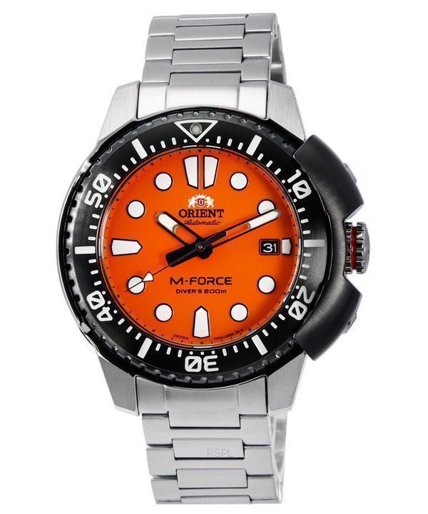 Orient M-Force AC0L Sports Acier Inoxydable Cadran Orange Automatique Diver',s RA-AC0L08Y00B 200M Montre Homme