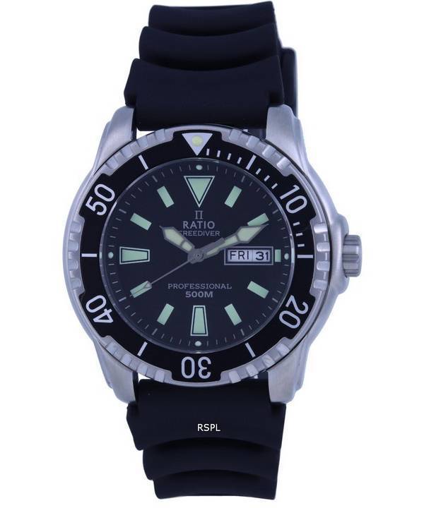 Ratio FreeDiver Cadran Noir Bracelet PU Quartz 48HA90-12-BLK 500M Montre Homme