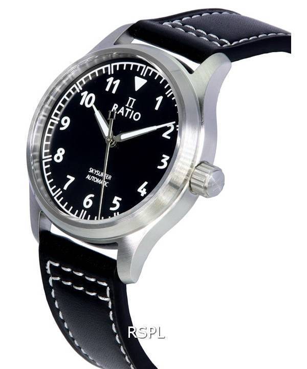 Ratio Skysurfer Pilot Black Sunray Cadran Cuir Automatique RTS305 200M Montre Homme