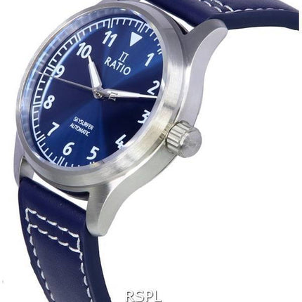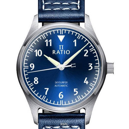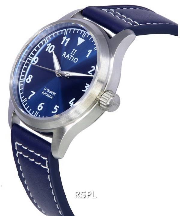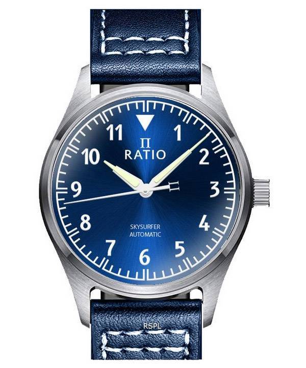 Ratio Skysurfer Pilot Blue Sunray Cadran Cuir Automatique RTS302 200M Montre Homme
