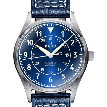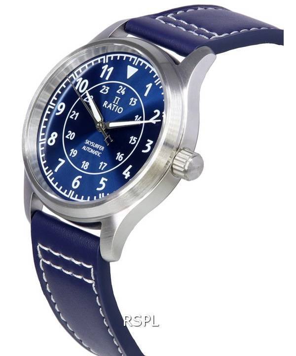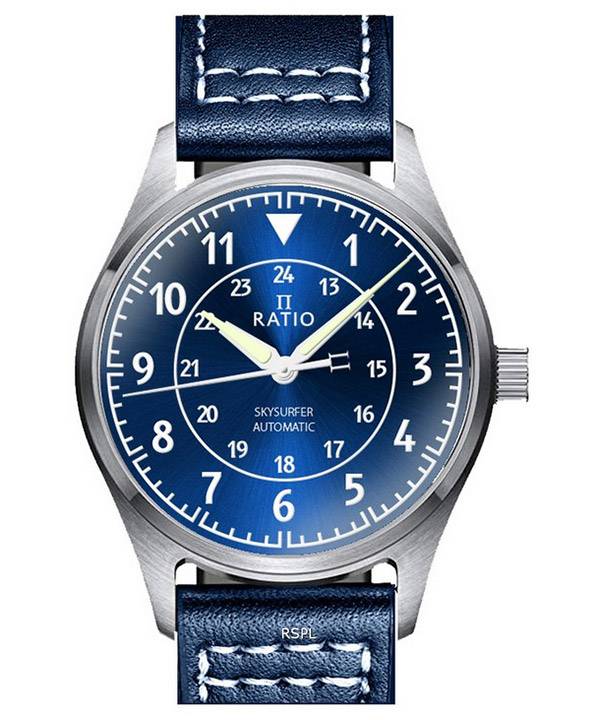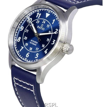 Ratio Skysurfer Pilot Blue Sunray Cadran Cuir Automatique RTS309 200M Montre Homme