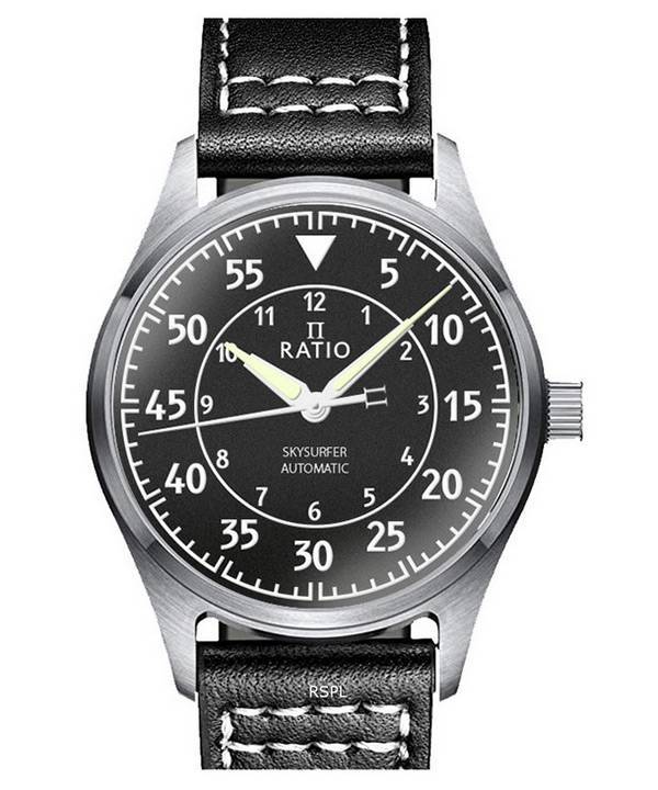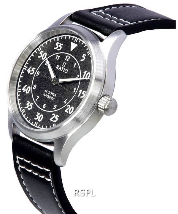 Ratio Skysurfer Pilot Noir Texturé Cadran Cuir Automatique RTS320 200M Montre Homme