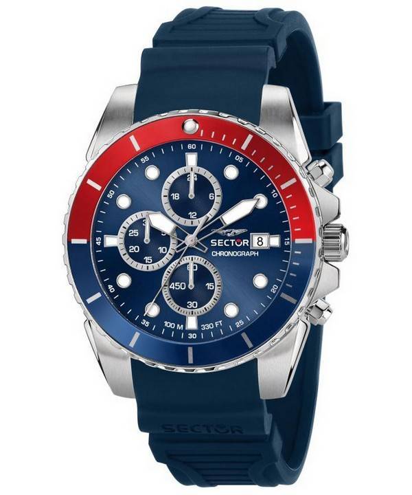 Sector 450 Chronograph Blue Sunray Dial Bracelet en silicone Quartz R3271776010 100M Montre pour homme