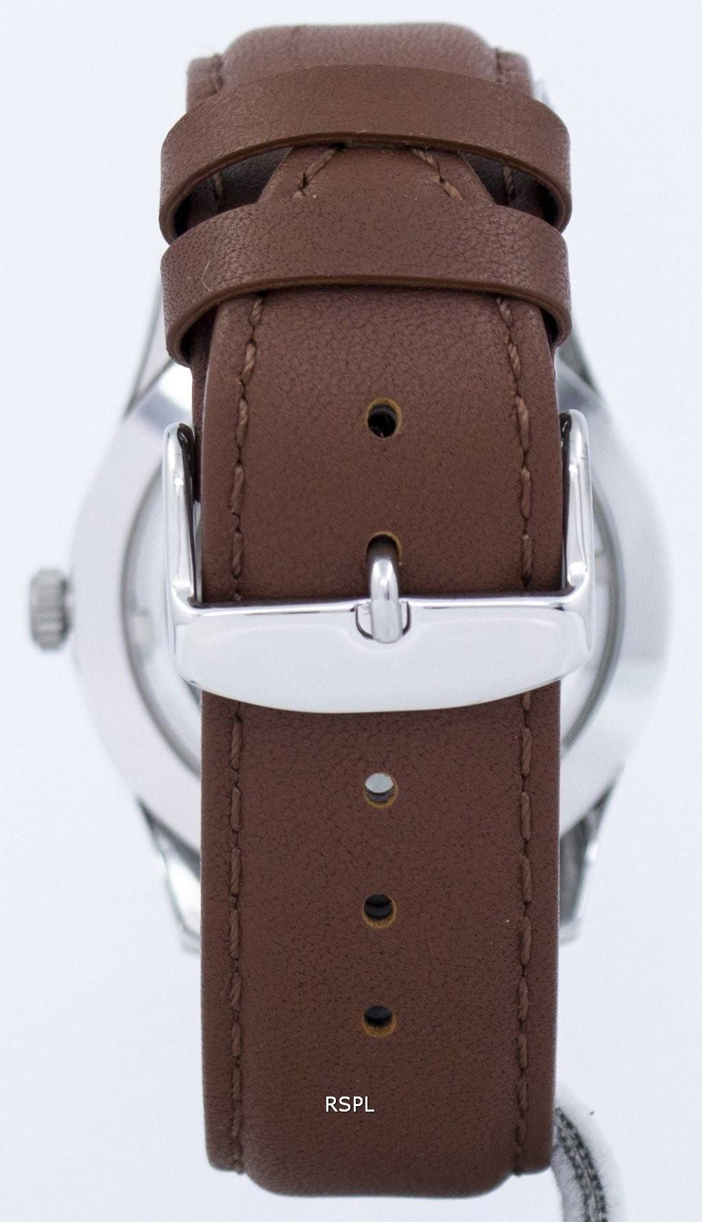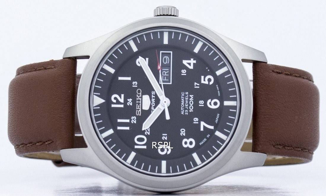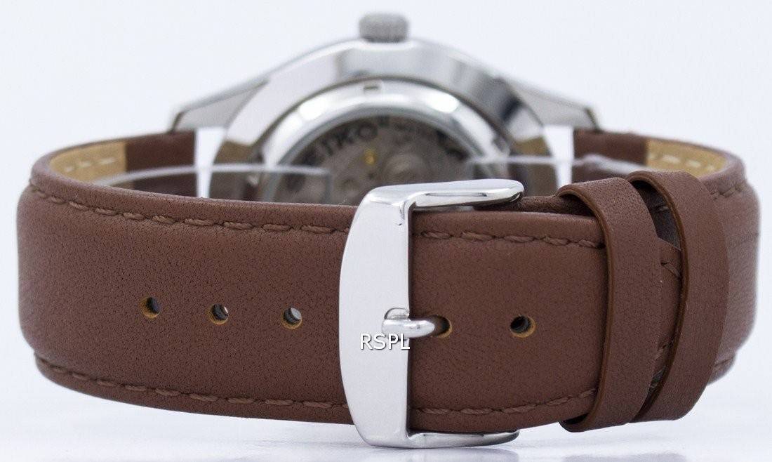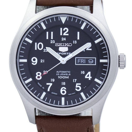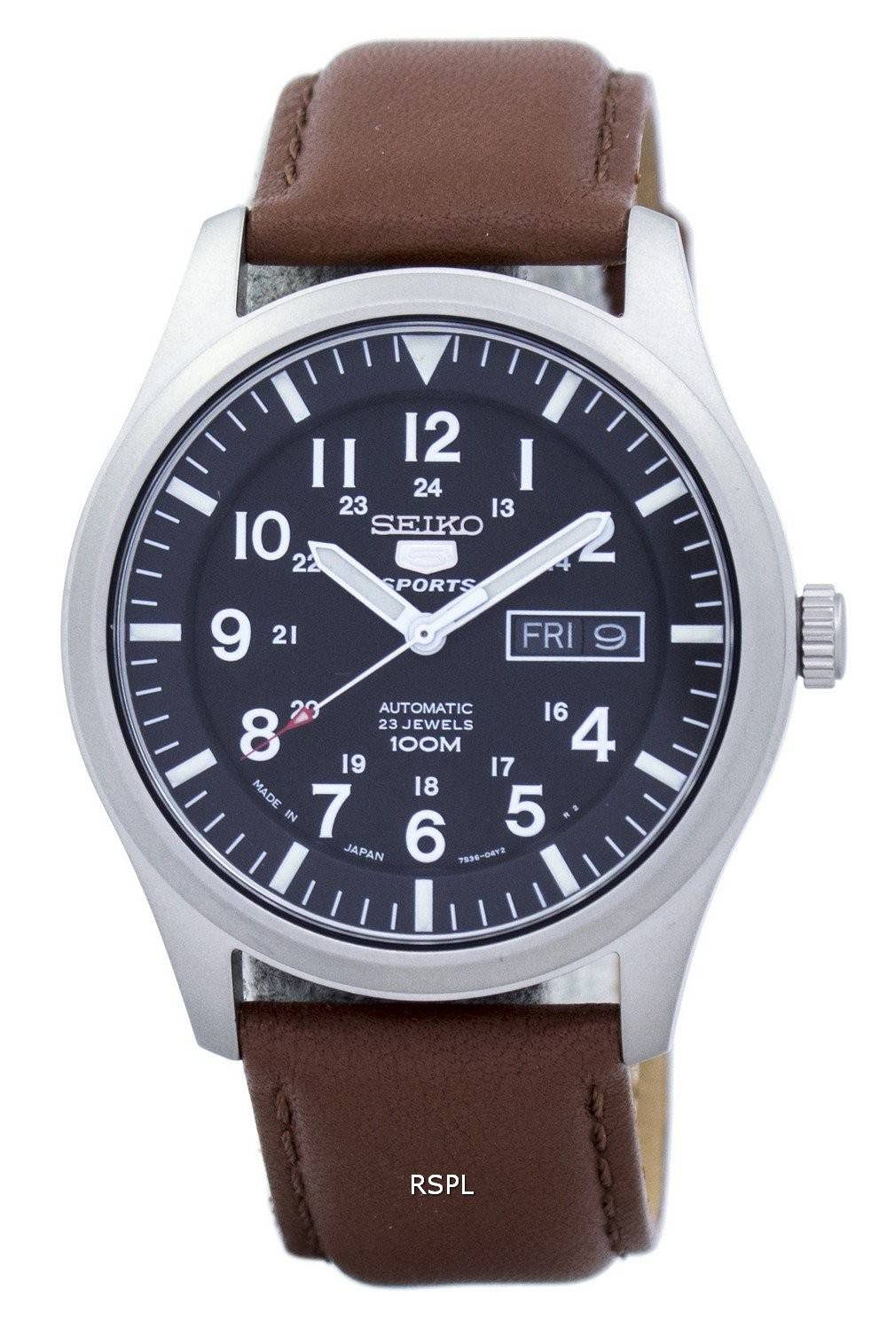 Seiko 5 Sports automatique Japon fait rapport cuir marron SNZG15J1-LS12 montre homme