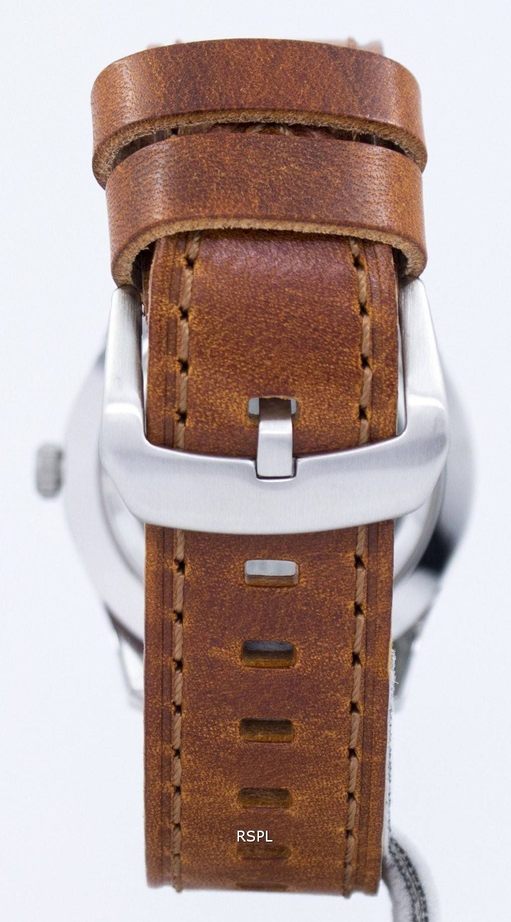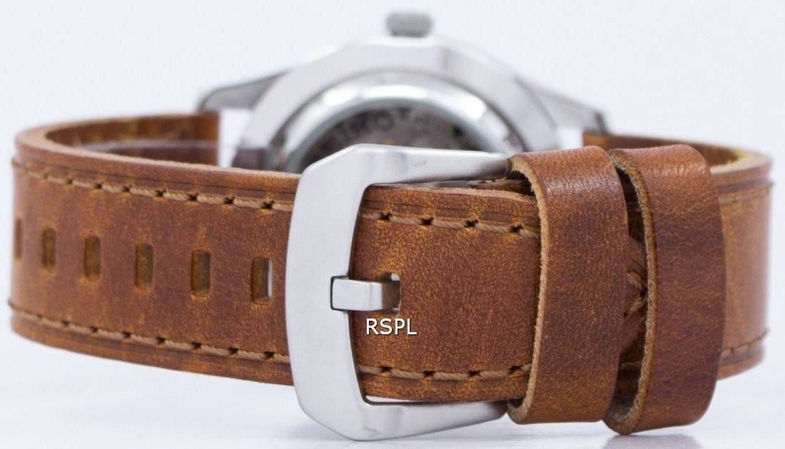 Seiko 5 Sports automatique Japon fait rapport cuir marron SNZG15J1-LS9 montre homme