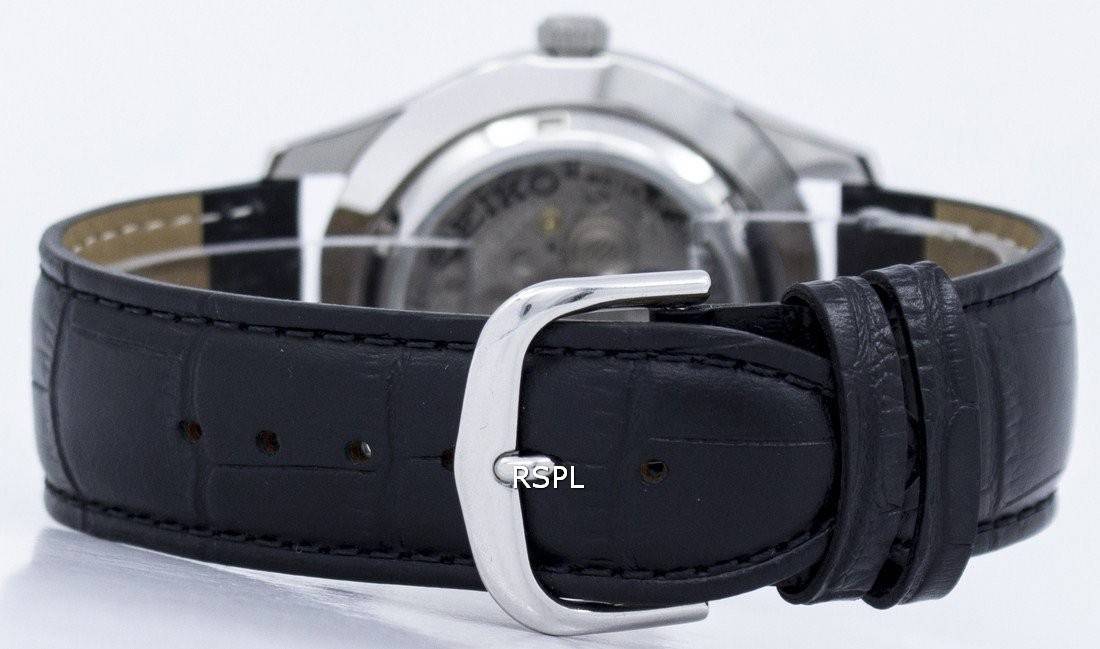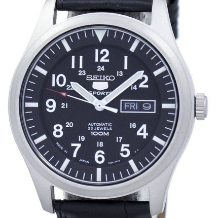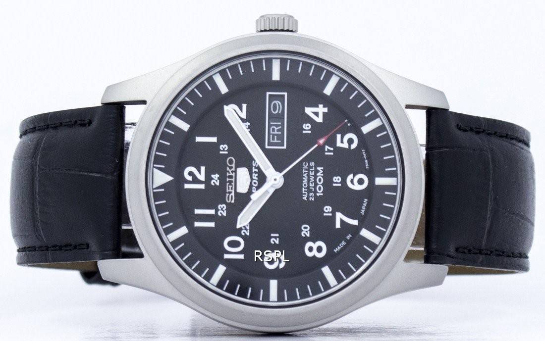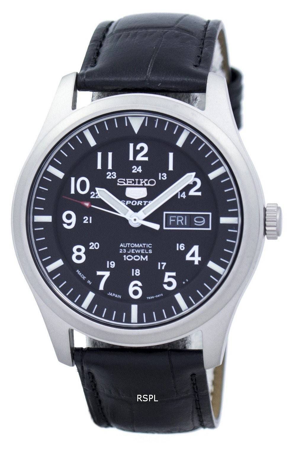 Seiko 5 Sports automatique Japon fait rapport / cuir noir SNZG15J1-LS6 montre homme