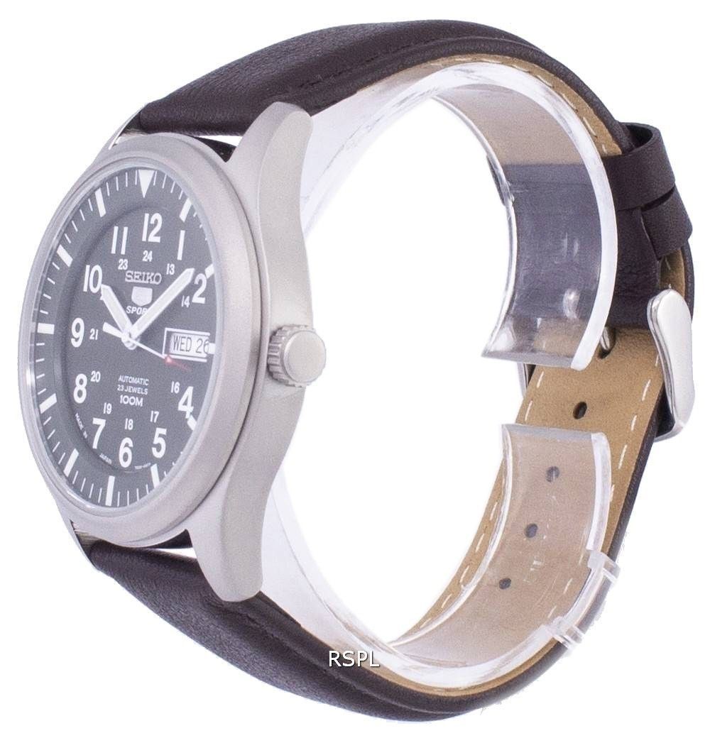 Seiko 5 Sports automatique Japon fait rapport en cuir marron foncé SNZG09J1-LS11 montre homme