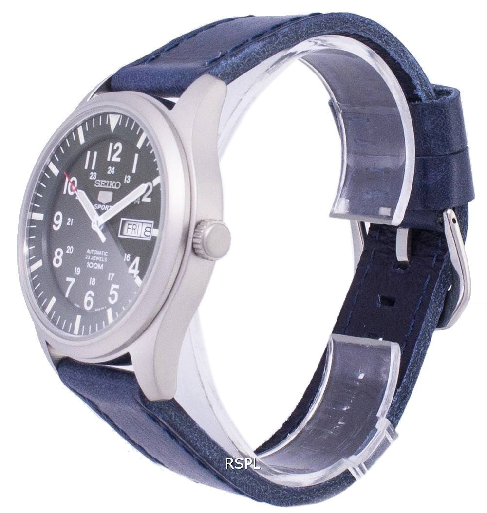 Seiko 5 Sports SNZG09K1-LS13 en cuir bleu foncé automatique bracelet montre homme