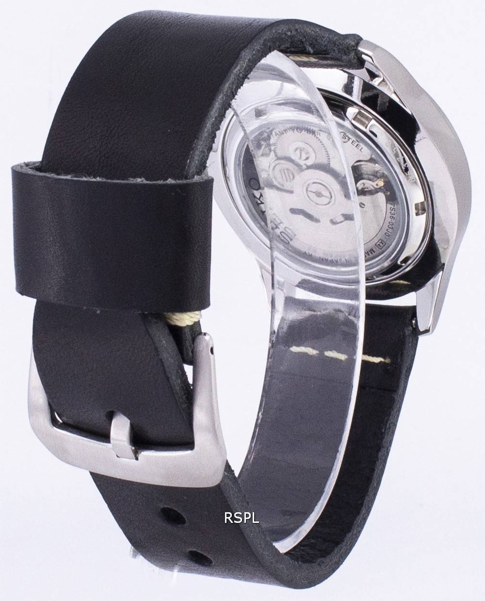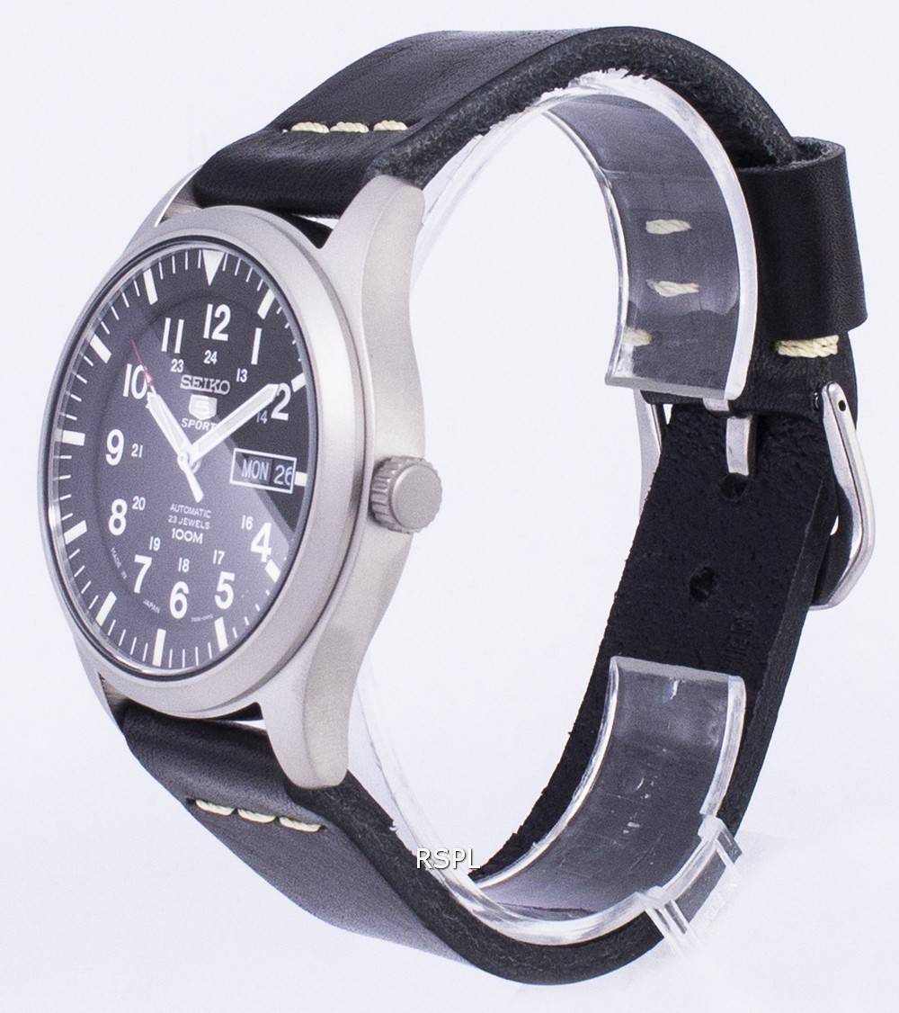 Seiko 5 Sports SNZG15J1-LS14 Japon fait en cuir noir bracelet montre homme