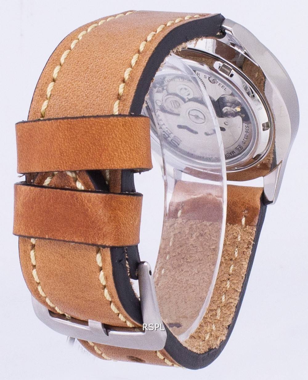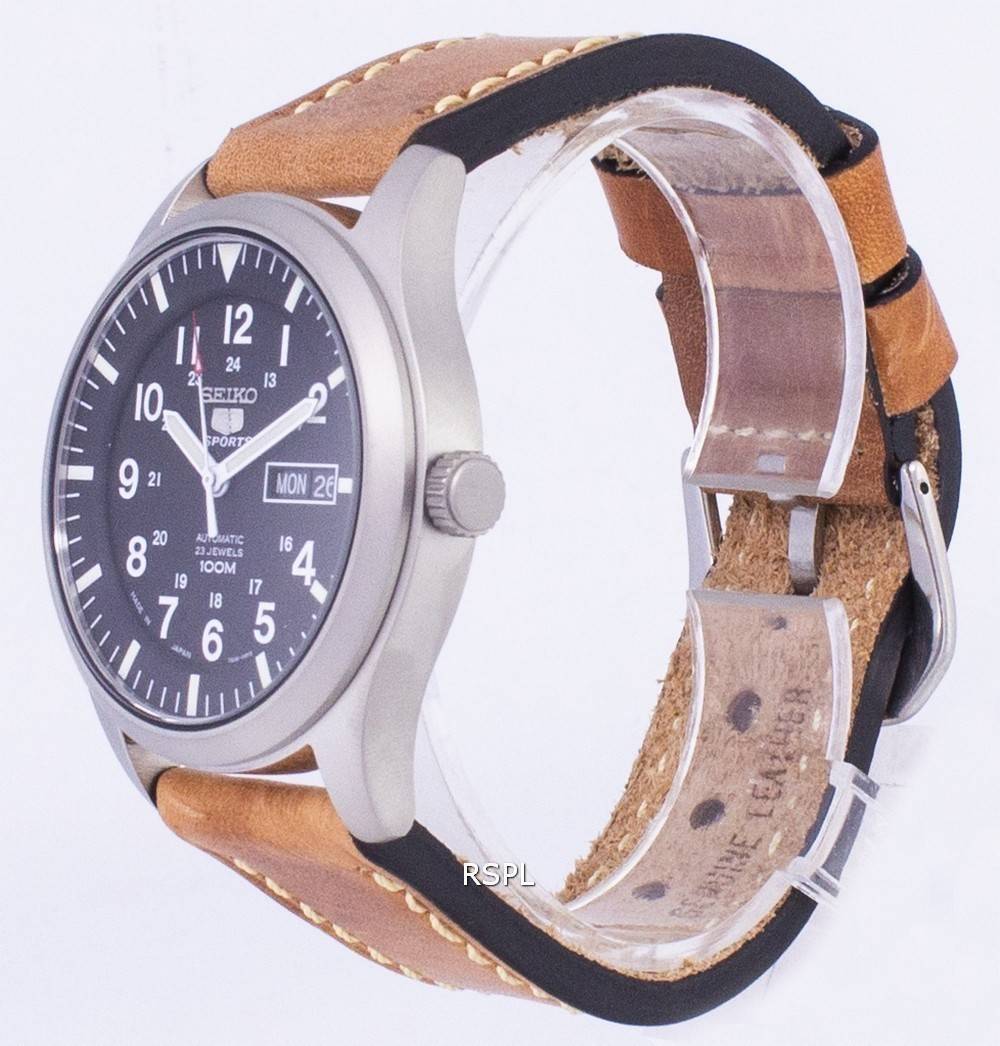Seiko 5 Sports SNZG15J1-LS17 automatique Japon faite en cuir marron bracelet montre homme