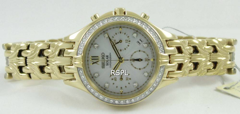 Seiko noyau solaire Chronographe cristaux Swarovski Montre SSC876P1 SSC876P femmes