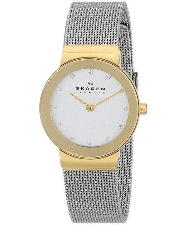 Skagen Freja Cadran Argent Swarovski inoxydable Montre en acier de maille Bracelet 358SGSCD femmes