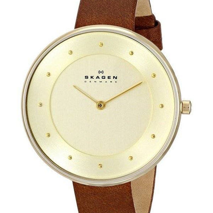 Skagen Gitte Champagne Dial cuir brun Montre Strap SKW2138 femmes