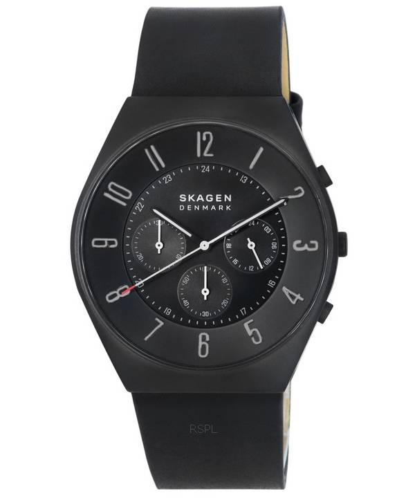 Skagen Grenen chronographe minuit bracelet en cuir cadran noir Quartz SKW6843 montre homme fr