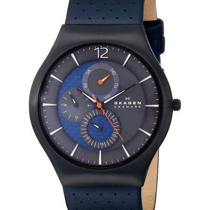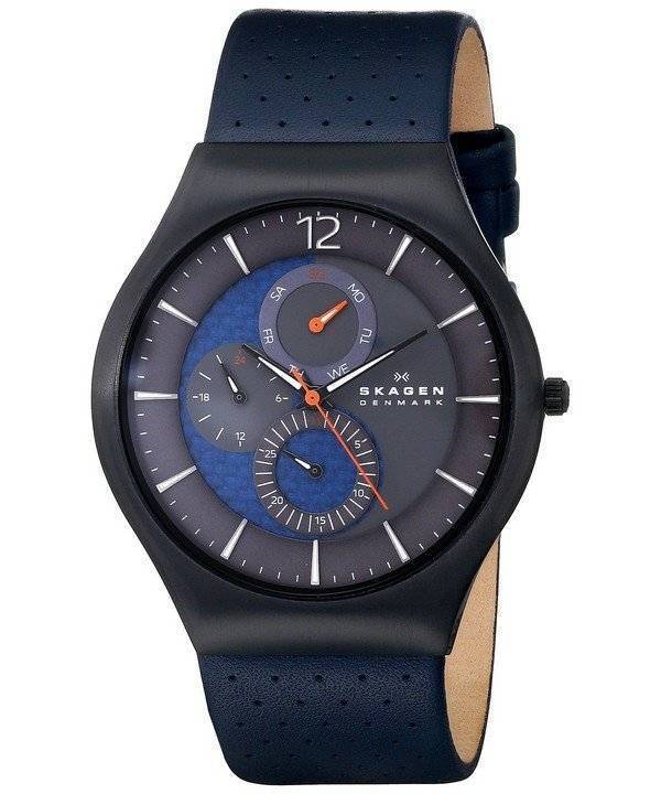 Skagen Grenen perforé en cuir bleu SKW6149 montre homme