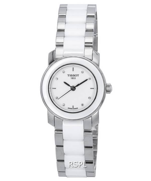 Tissot T-Trend Cera Crystal Accents Cadran Blanc Quartz T064.210.22.016.00 T0642102201600 Montre Femme