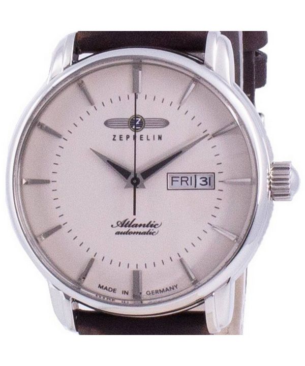Montre Zeppelin Atlantik cadran beige bracelet en cuir automatique 8466-5 84665 hommes